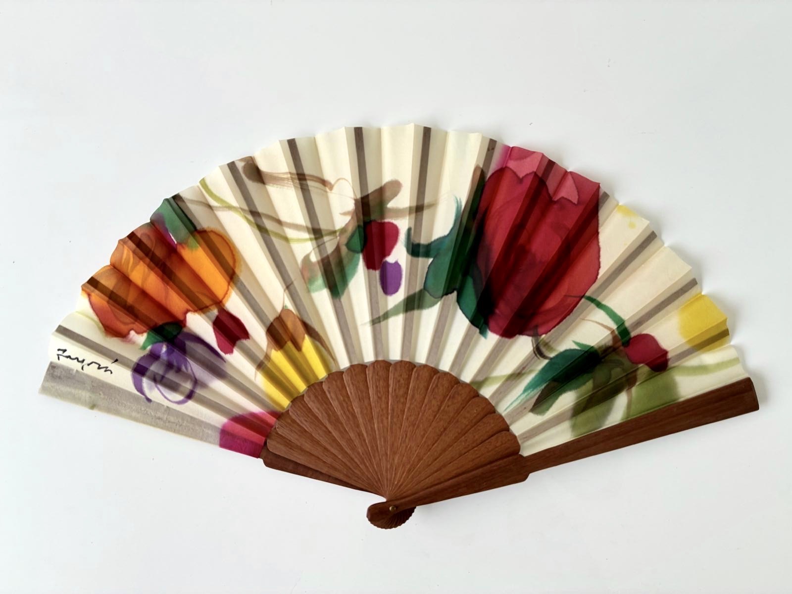 Abanico pintado a mano en seda natural 100%. Pieza única