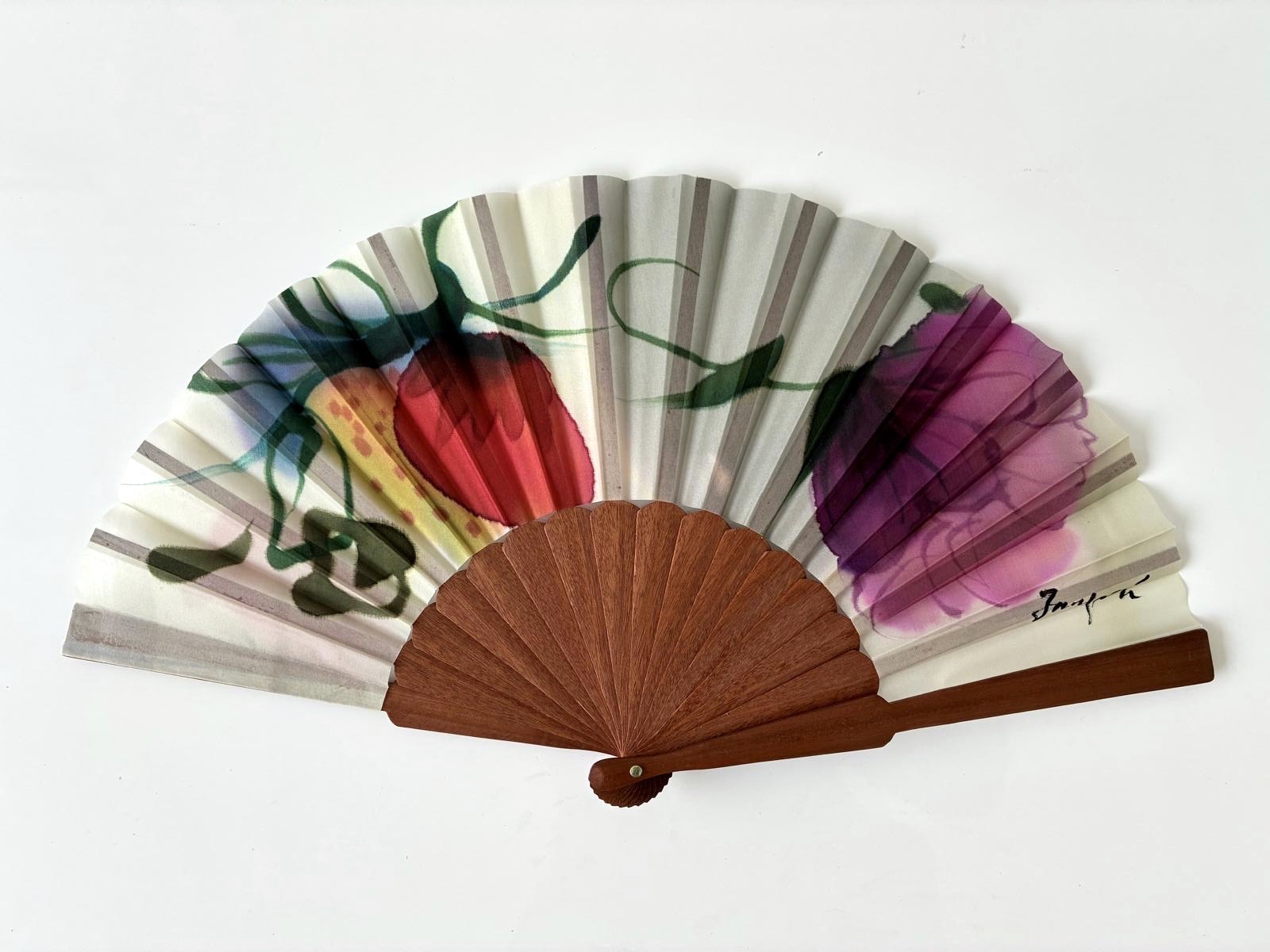Abanico pintado a mano en seda natural 100%. Pieza única