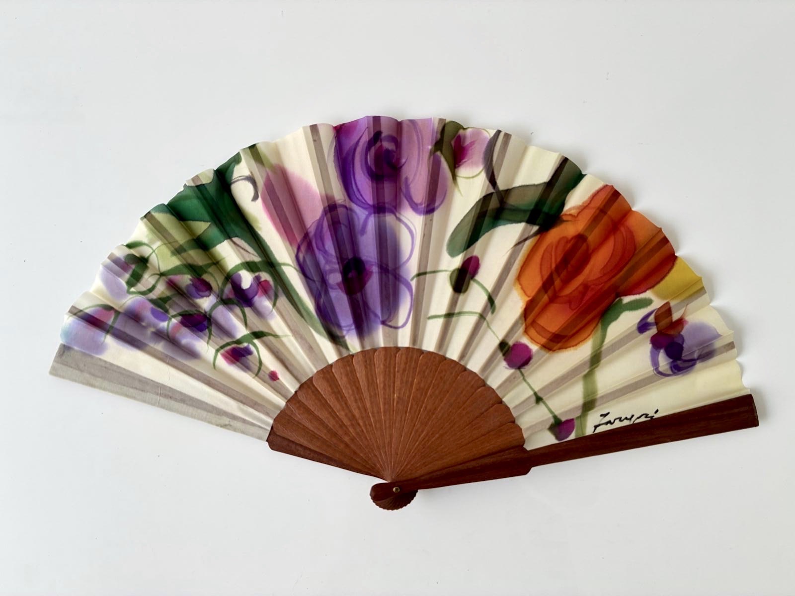 Abanico pintado a mano en seda natural 100%. Pieza única