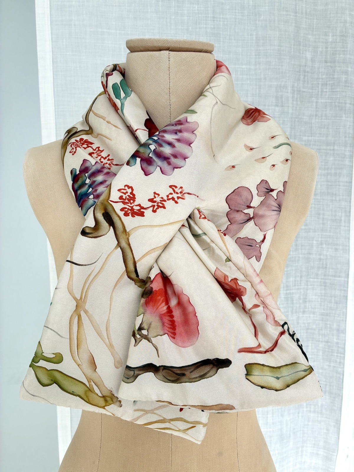 Bufanda de dos capas de seda satín 100% con un relleno entre ellas.