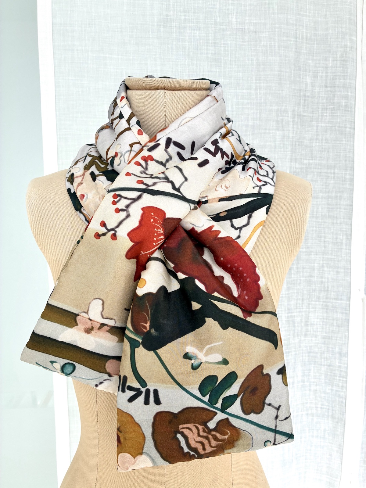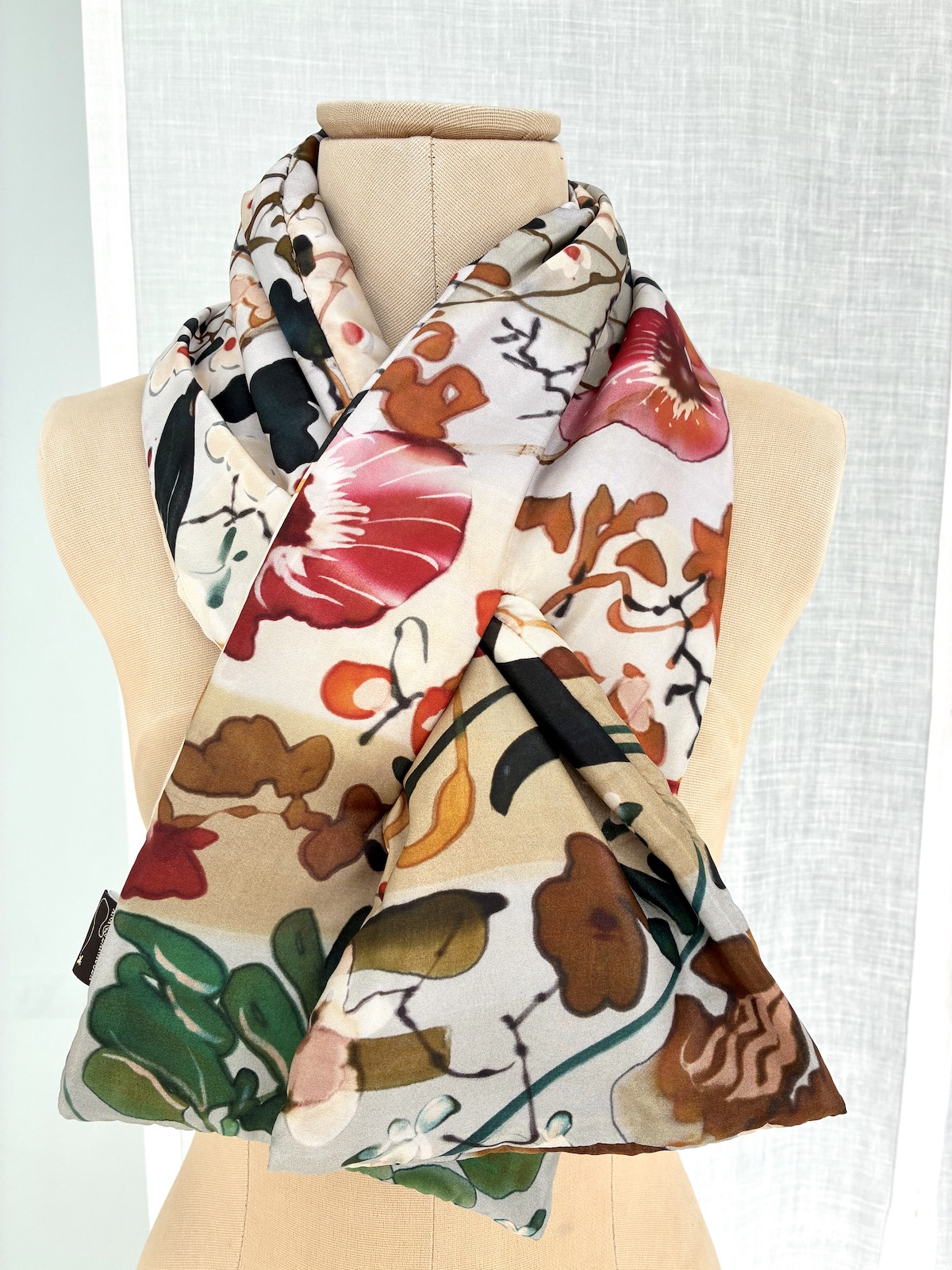 Bufanda de dos capas de seda satín 100% con un relleno suave entre ellas.