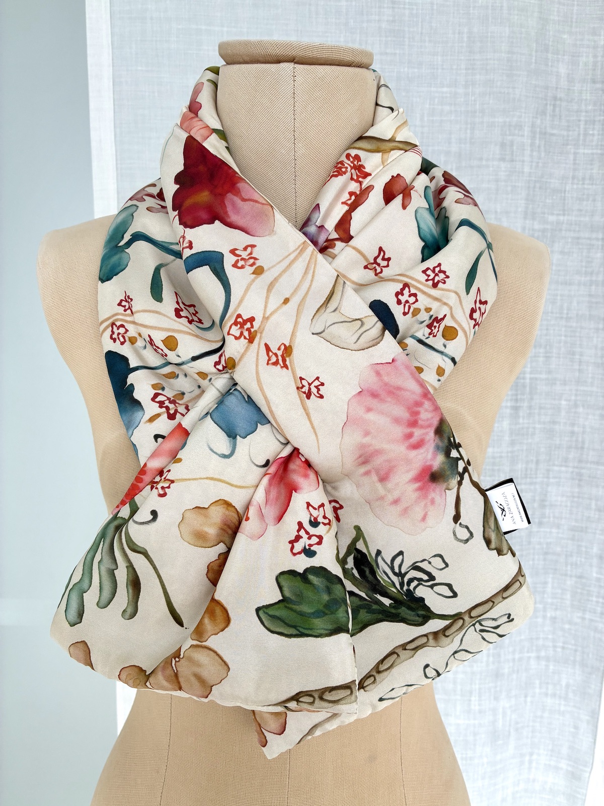Bufanda de dos capas de seda satín 100% con un relleno entre ellas.