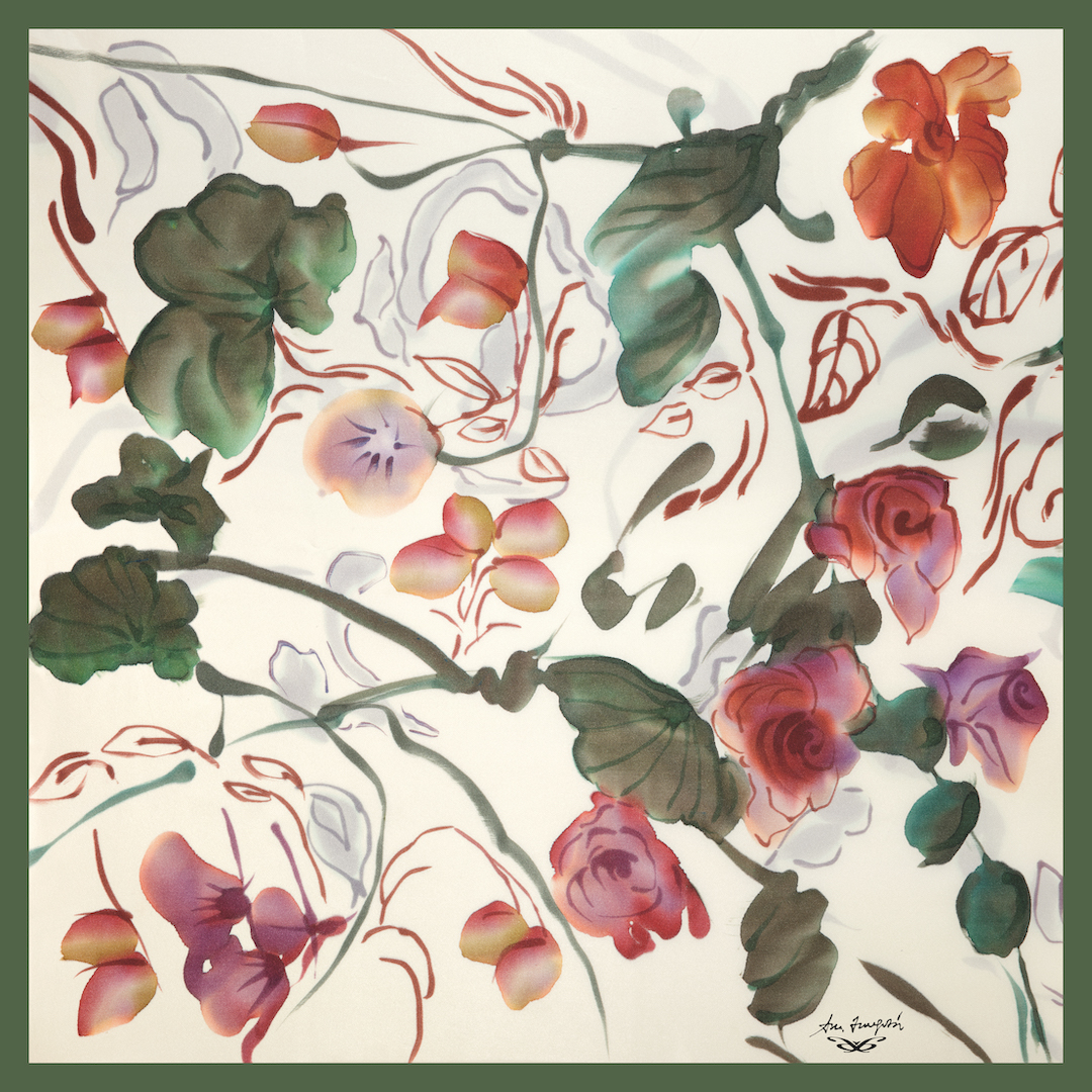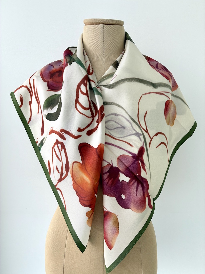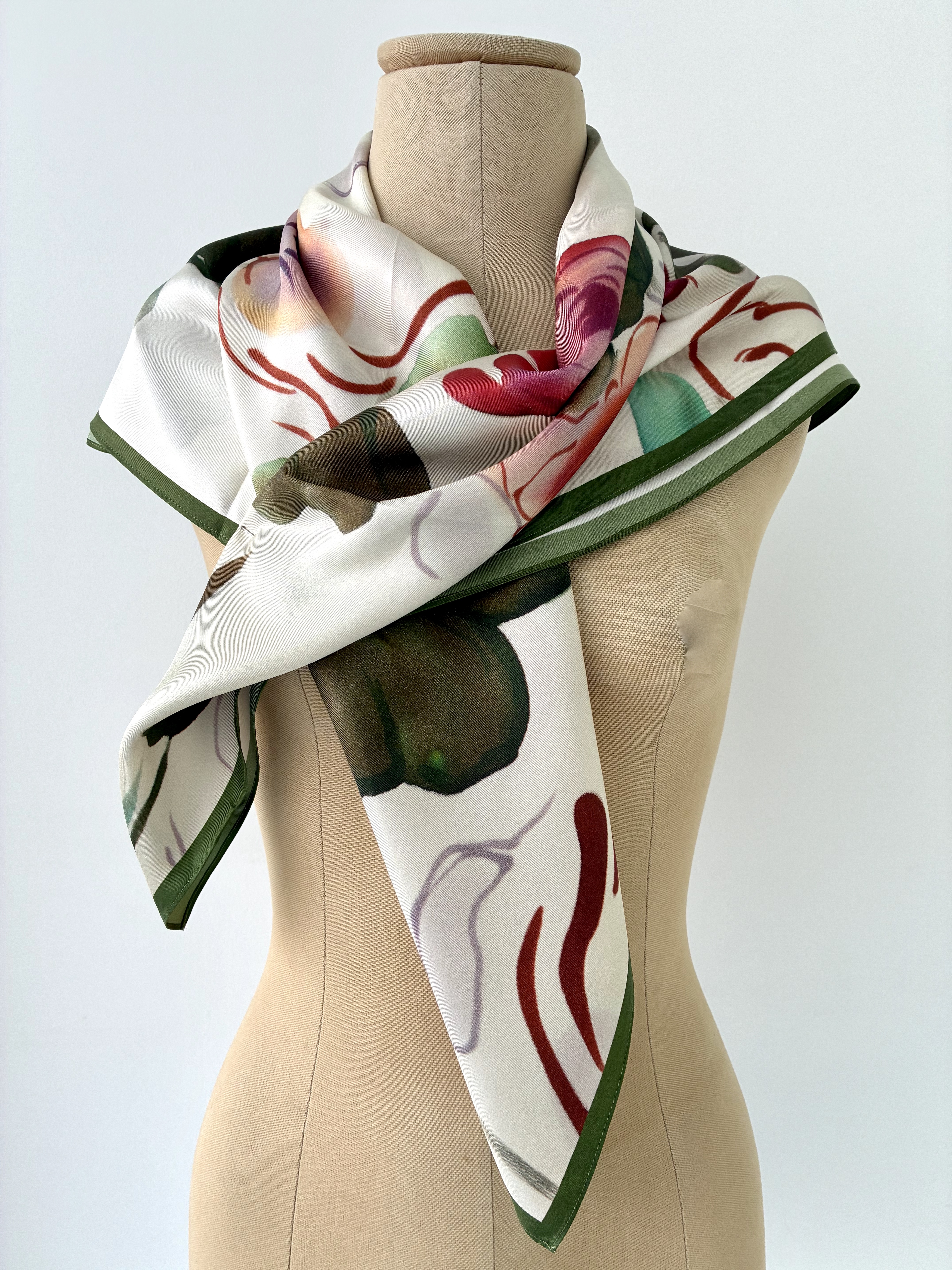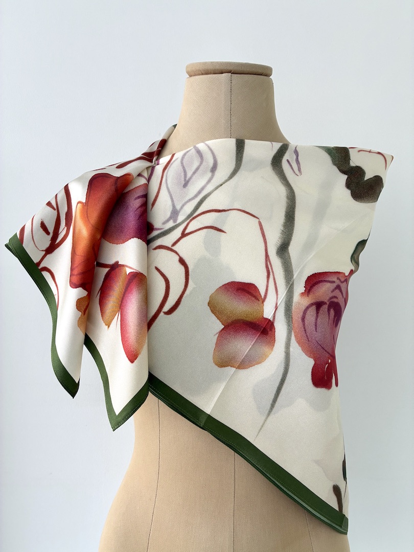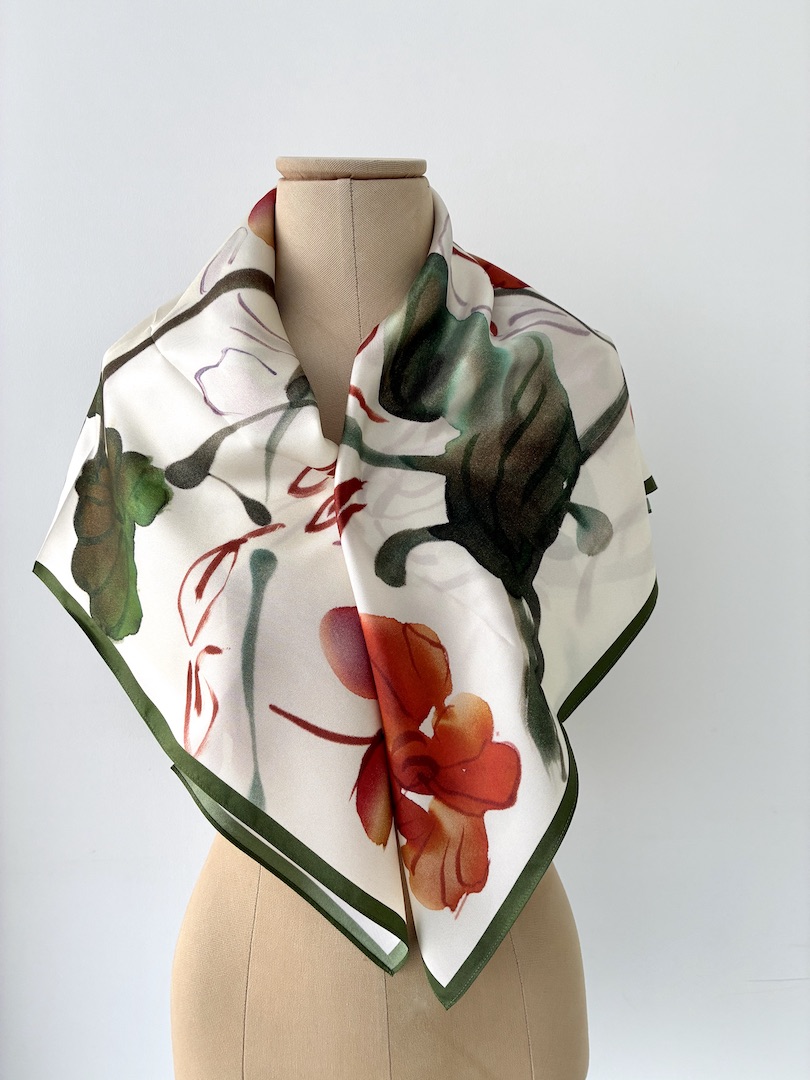 Pañuelo en twill de seda, estampado a partir del original pintado a mano por la artista Ana Zaragozá.