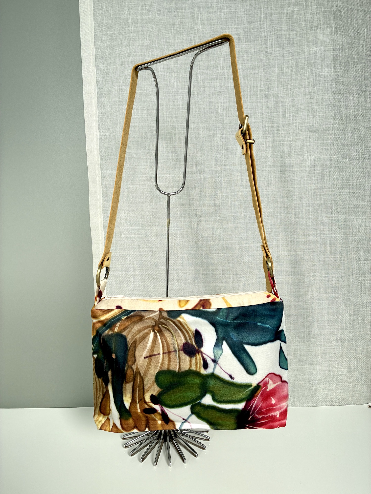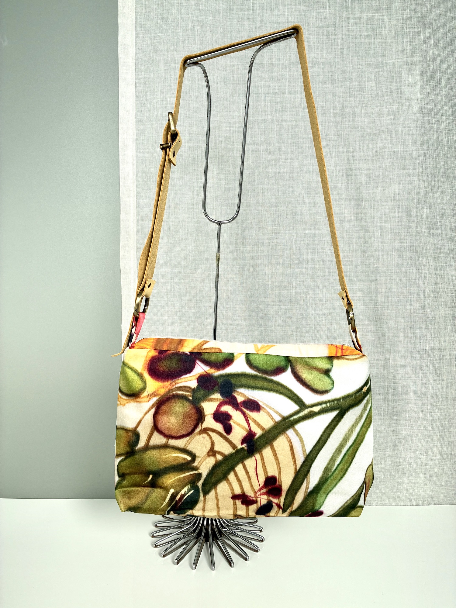 Bolso en seda vegana con forro y bolsillo interior.