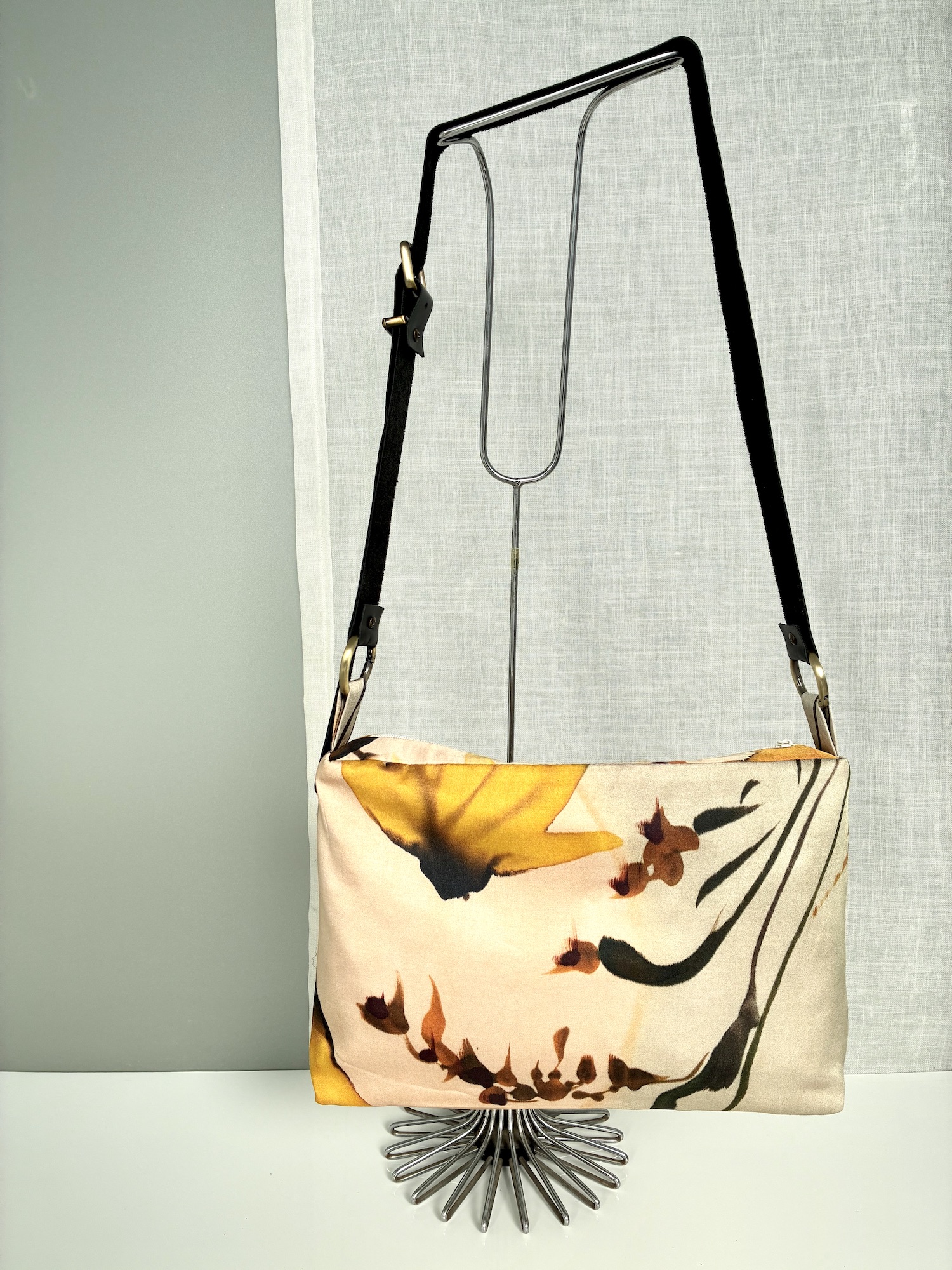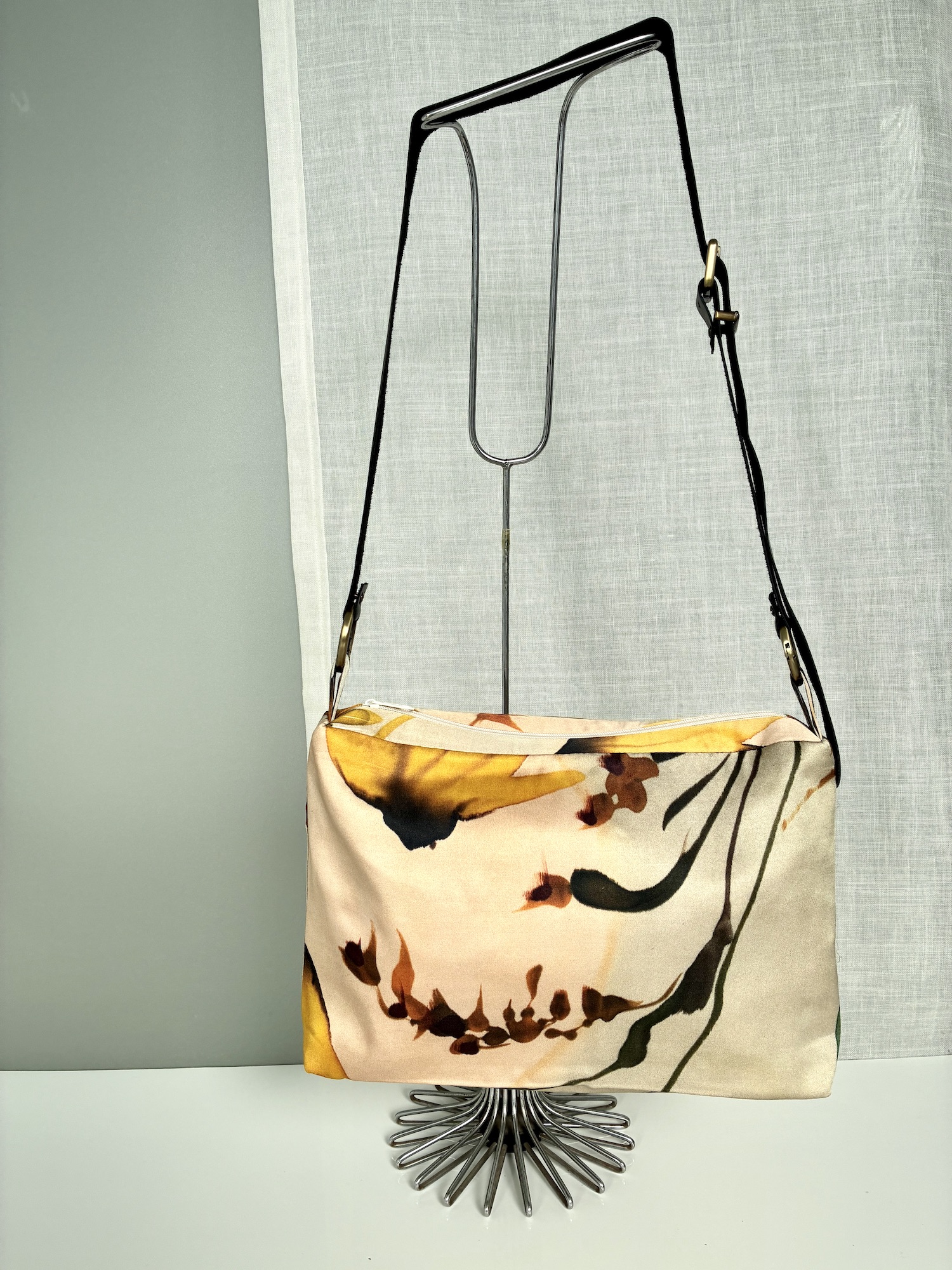 Bolso en seda vegana con forro y bolsillo interior.