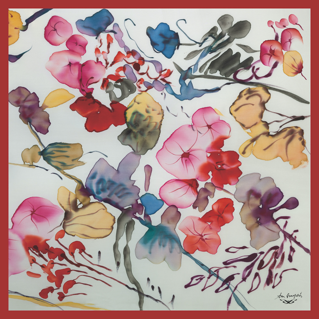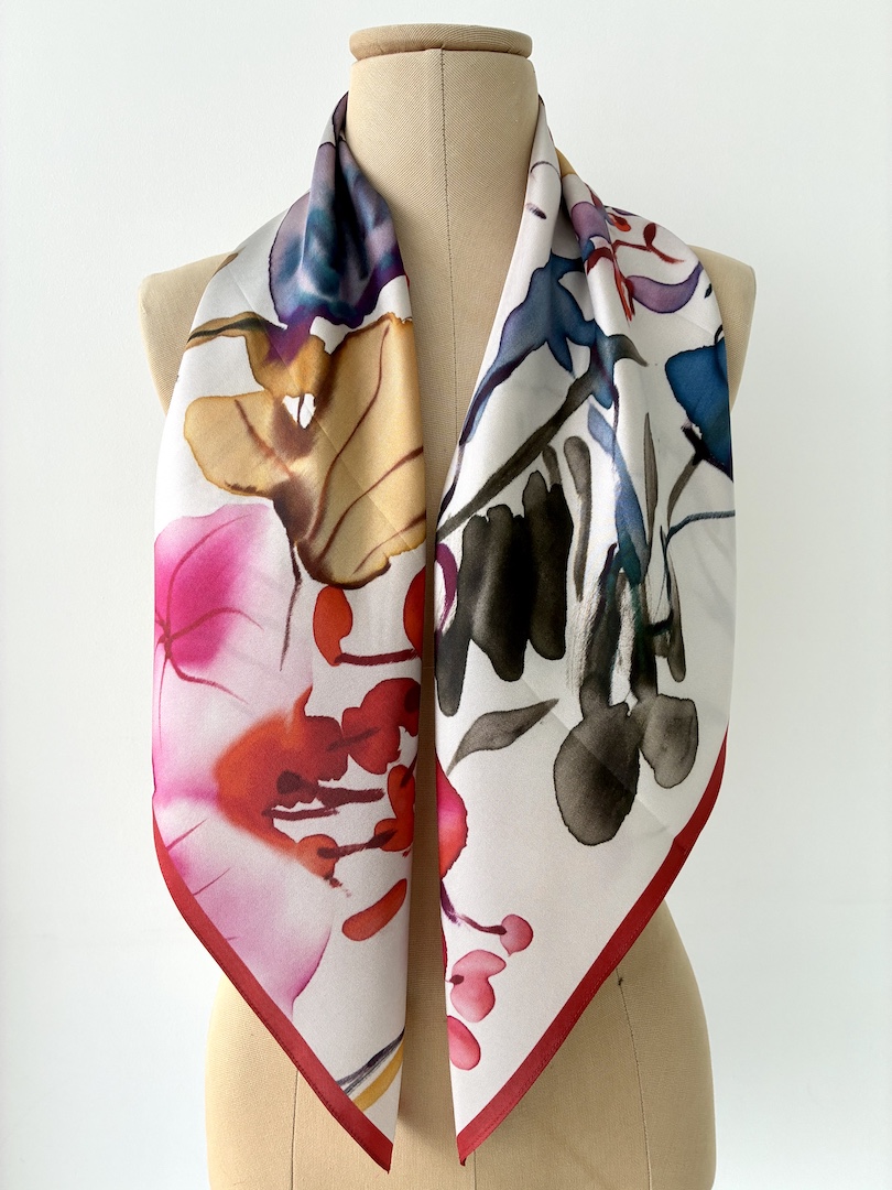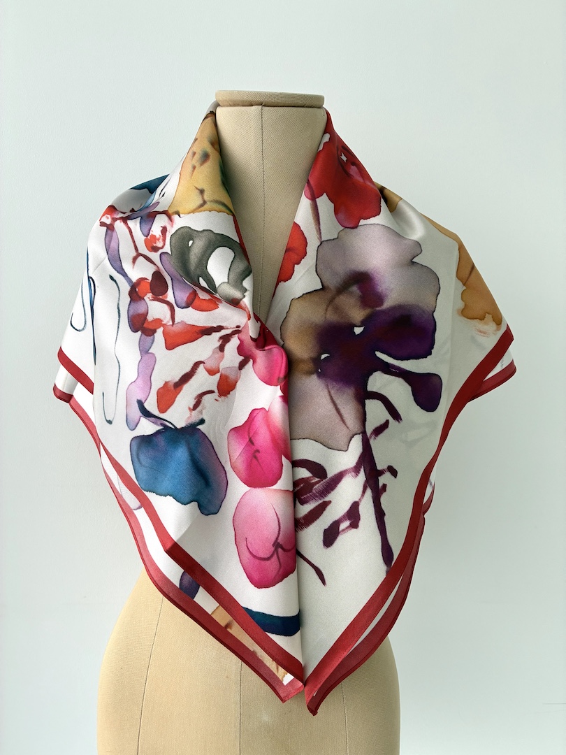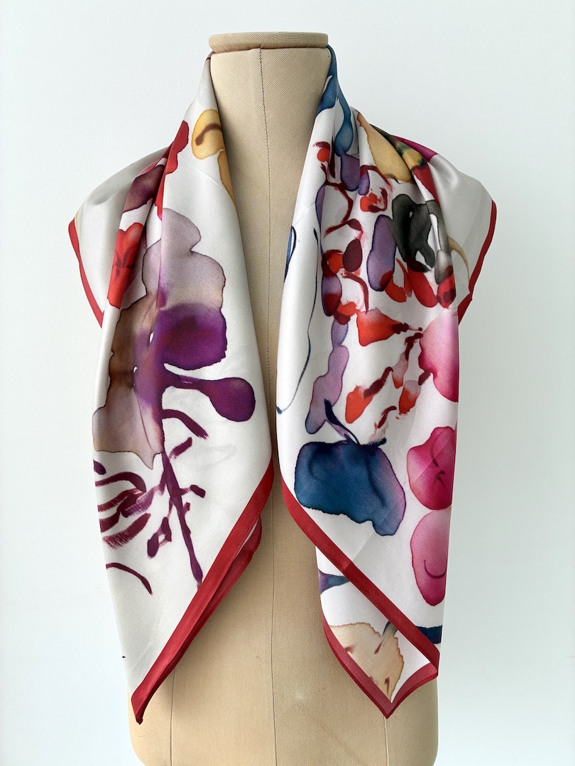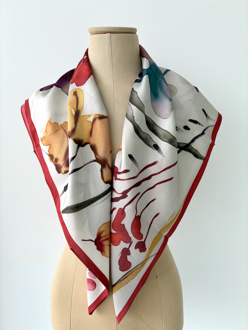 Pañuelo en twill de seda, estampado a partir del original pintado a mano por la artista Ana Zaragozá.