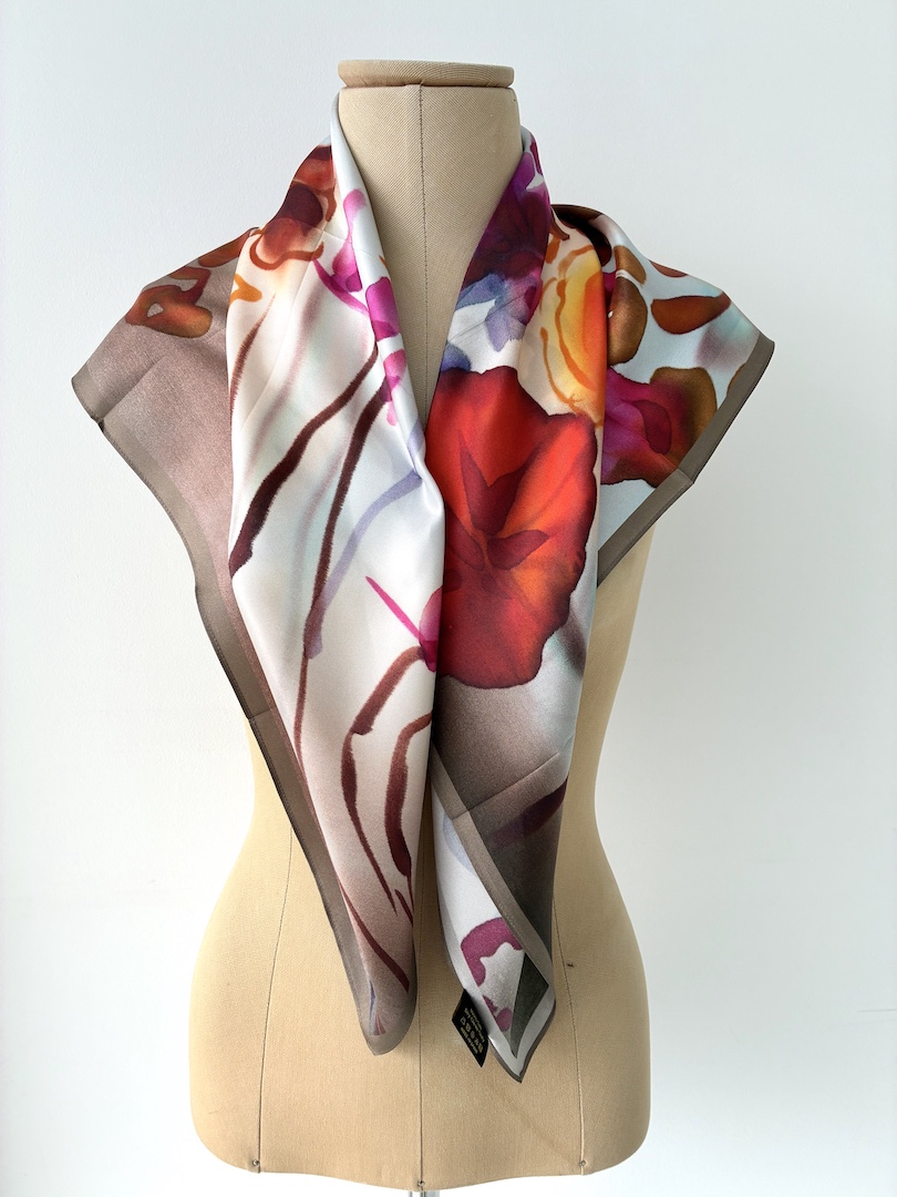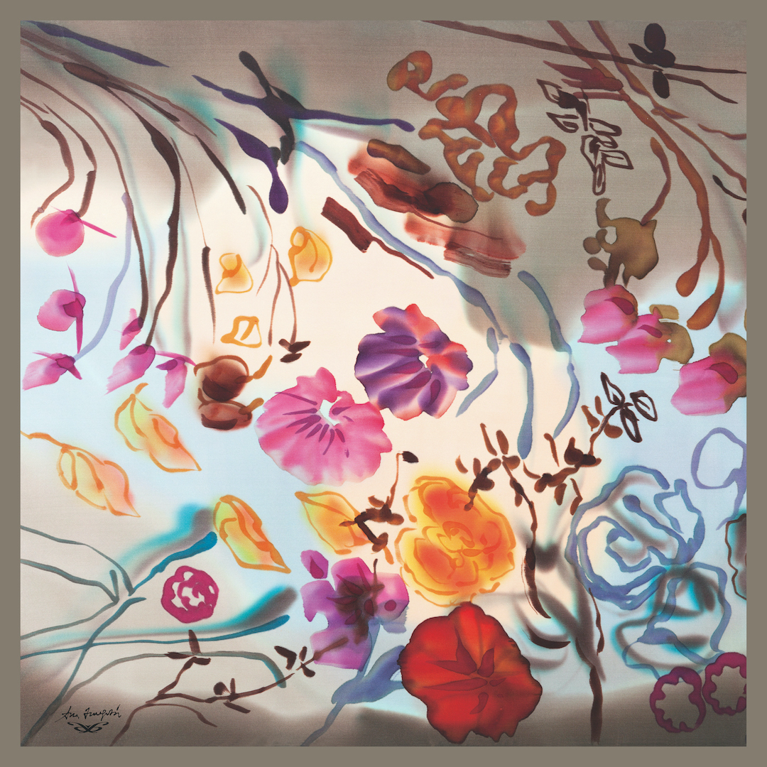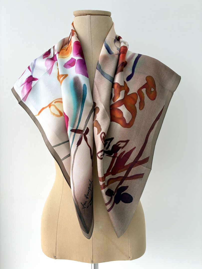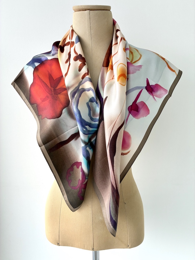 Pañuelo en twill de seda, estampado a partir del original pintado a mano por la artista Ana Zaragozá.