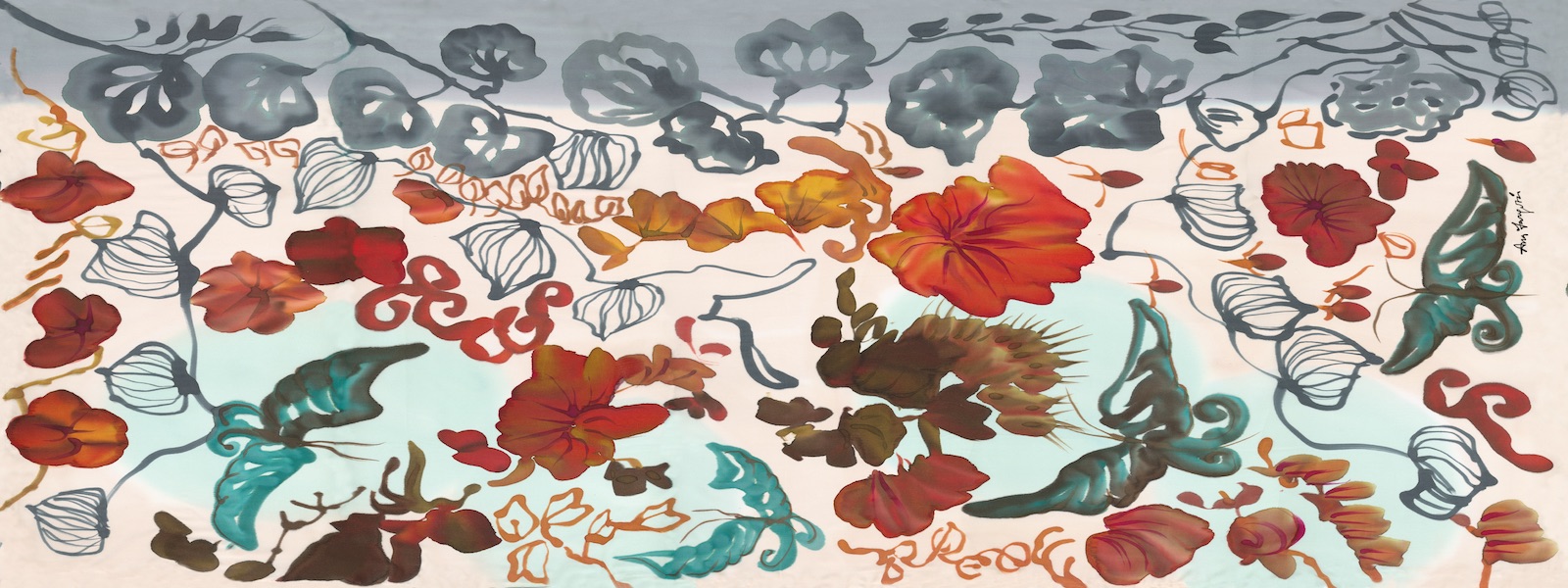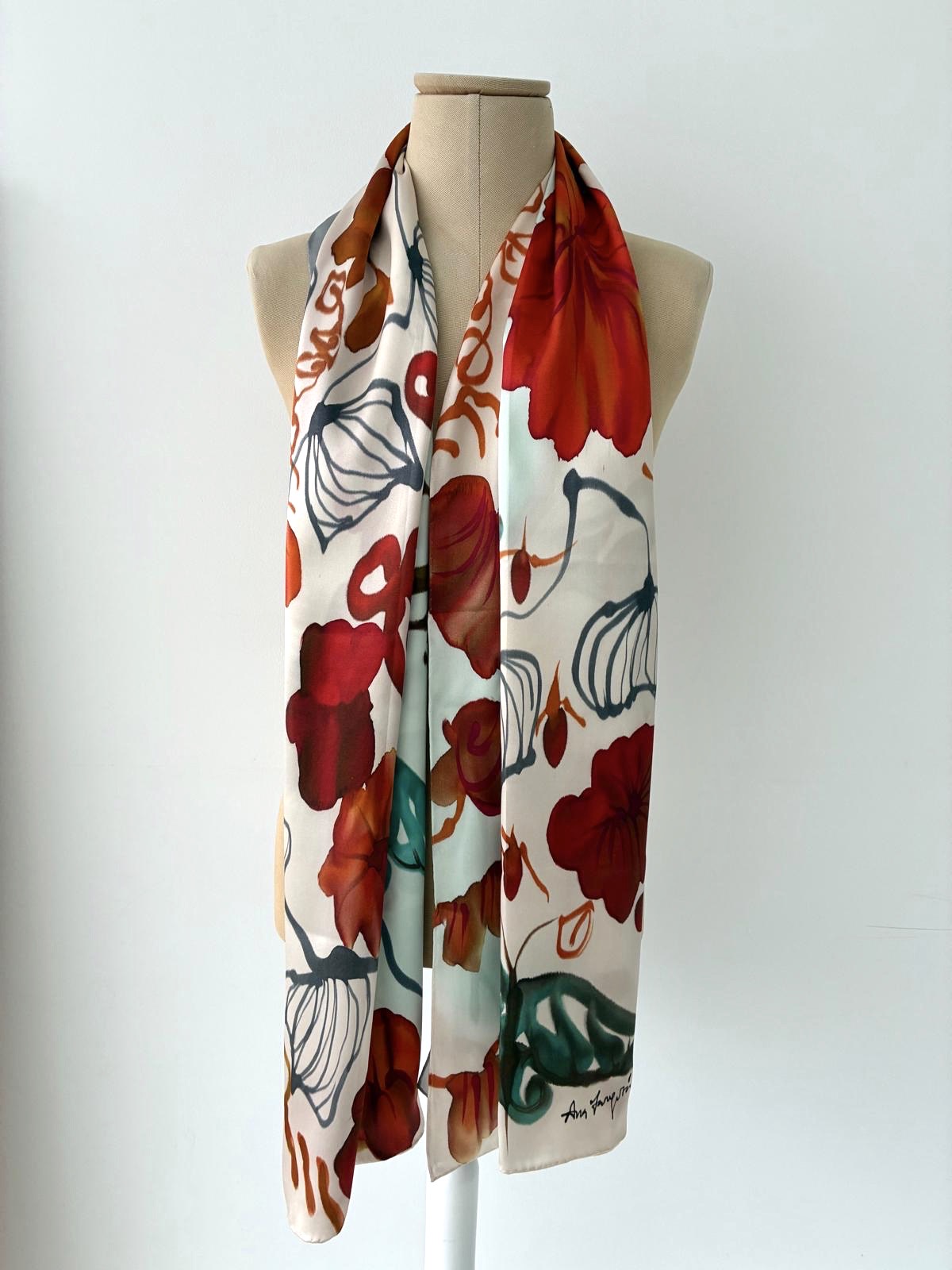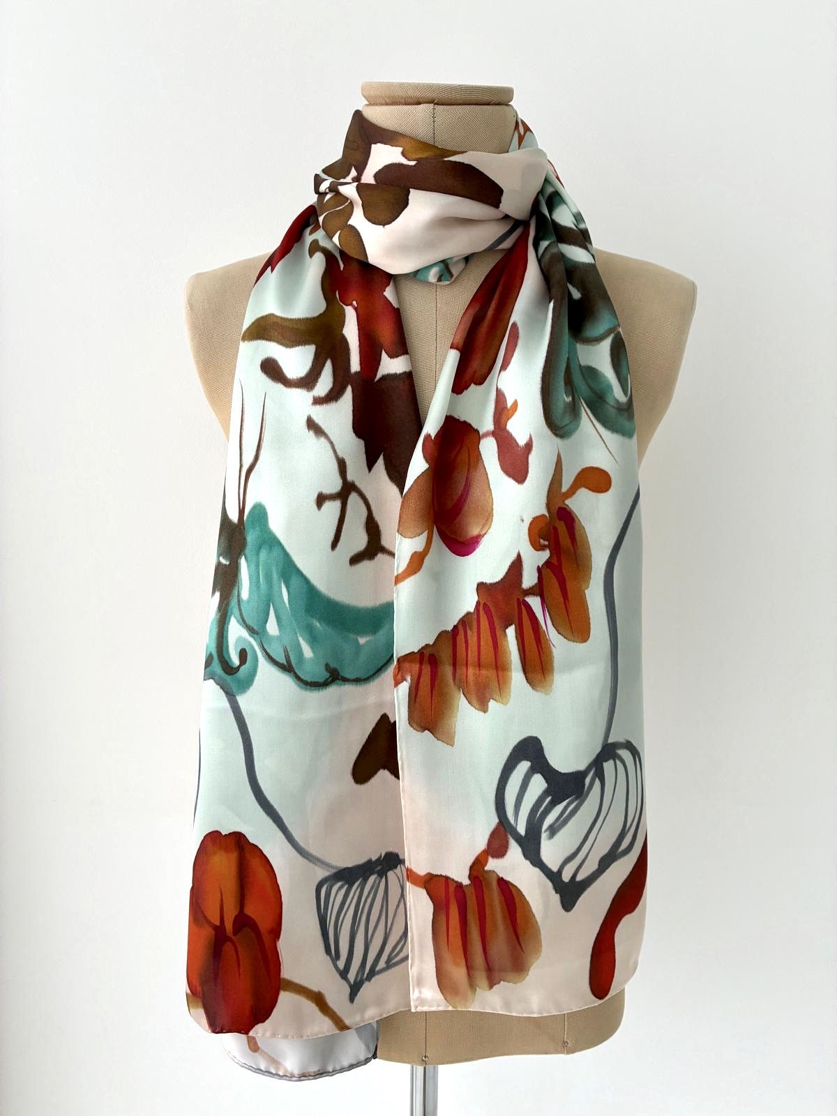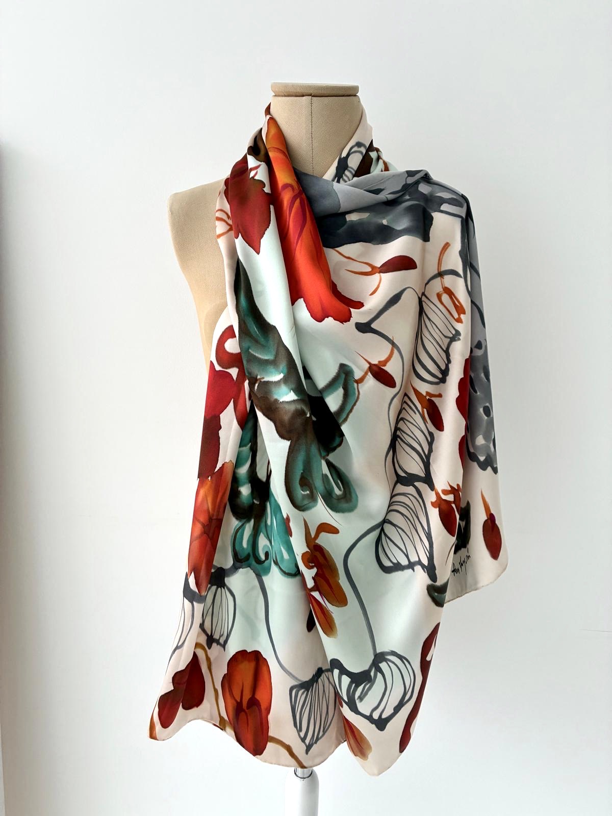 Echarpe de seda 100% estampado a partir del original pintado a mano por la artista Ana Zaragozá