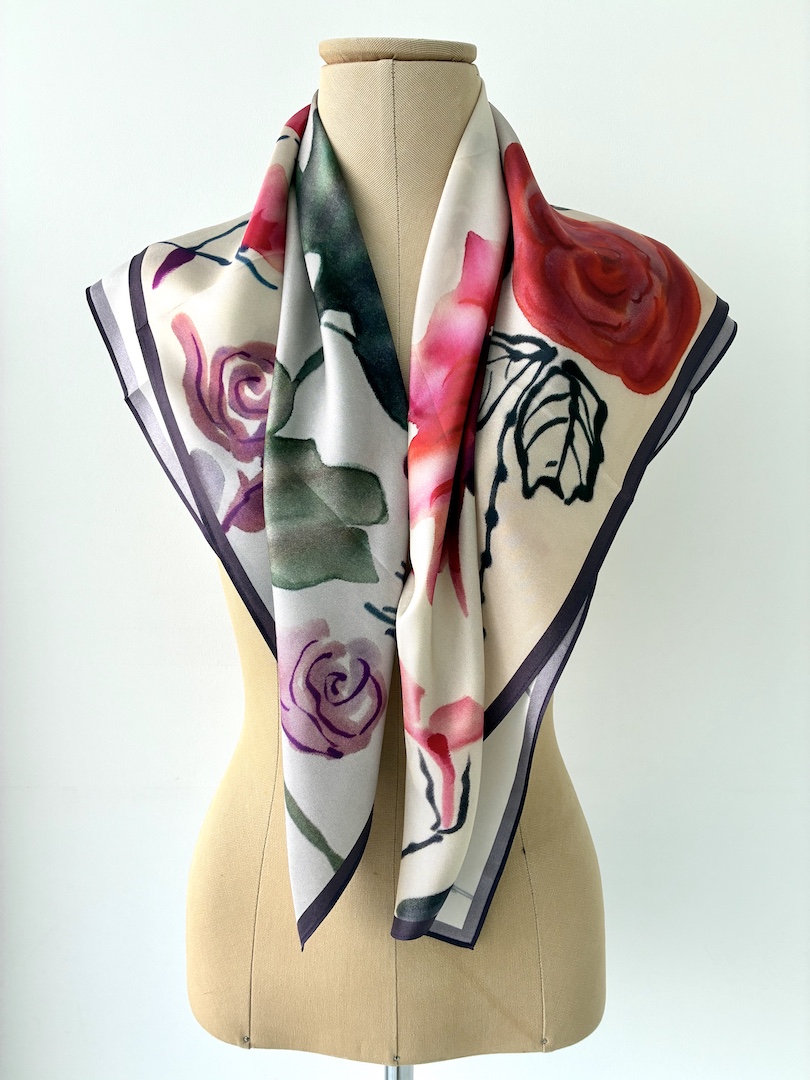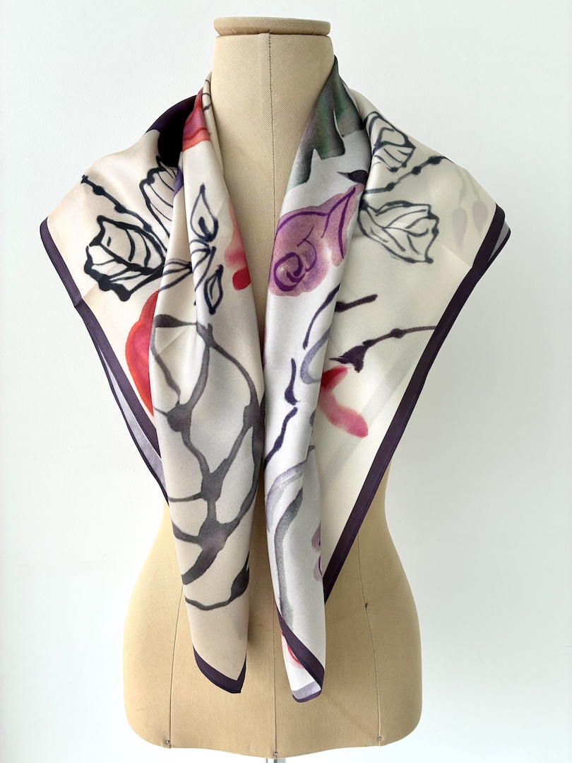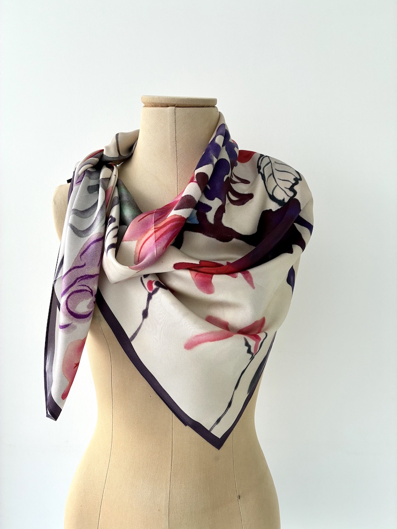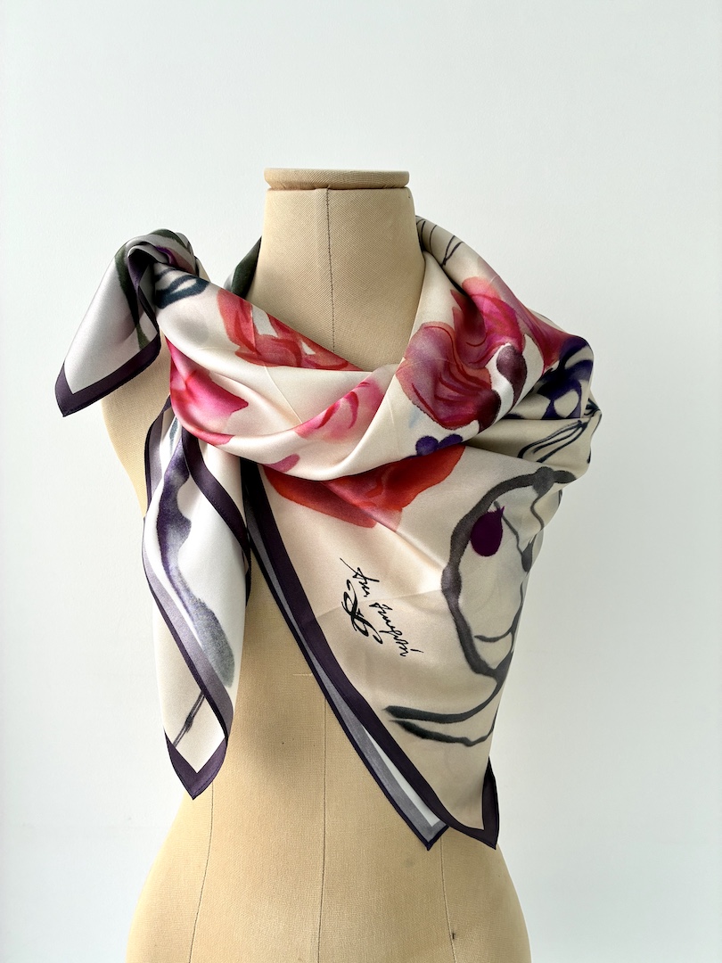 Pañuelo en twill de seda, estampado a partir del original pintado a mano por la artista Ana Zaragozá.