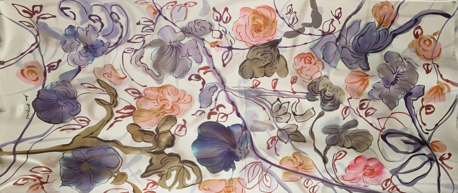 Fular de modal estampado a partir del original pintado a mano por la artista Ana Zaragozá.